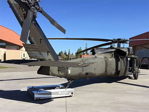 • - Extremely flat design: Mototok Alligator series tugs are the most compact electric and towbarless tugs worldwide, which enables them to dock easily under helicopters with low ground clearance due to attachments below the fuselage.